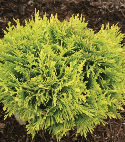 Versatile, compact, globe-shaped evergreen Arborvitae displaying bright green foliage that persists through winter.  A perfect choice for a container, small space garden, or plant in groups to add a color accent to the landscape. Excellent burn resistance.