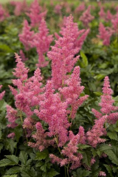 Beautiful bloom clusters are sure to provide excellent summer color in shadier areas of the landscape. The tall, feathery, pink blooms rise above the mound of bold green foliage. Creates a graceful border, or a dynamic mass planting. Thrives in dappled or full shade. An herbaceous perennial.