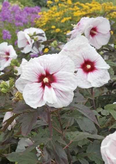 Absolutely stunning, soft, delicate white leaves with a hot pink-red center. Blooms over a long, warm season. Deciduous.