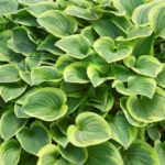 The showiest hosta among all of them. Beautiful green leaves are circled with white margins. Funnel-shaped flowers are dark green. Sun tolerant and will resist slug damage. An herbaceous perennial.